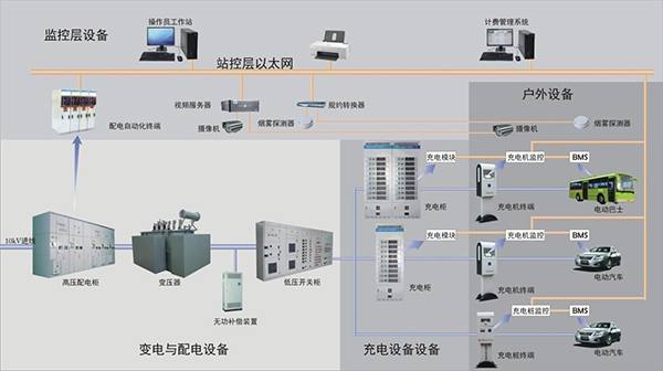 充電樁系統(tǒng)是由變電與配電設(shè)備系統(tǒng),充電設(shè)備系統(tǒng),戶外設(shè)備系統(tǒng),監(jiān)控層設(shè)備系統(tǒng)5大系統(tǒng)構(gòu)成。電網(wǎng)傳輸過來的高壓電壓通過高壓配電和變壓器降壓為低壓電壓,經(jīng)過低壓開關(guān)傳輸?shù)匠潆姌叮儆沙潆姽駥㈦娏髡鳎瑸V波,放大,讓電壓和電流達(dá)到了要求值。