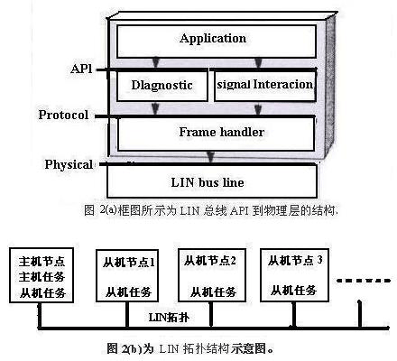 針對汽車應(yīng)用的LIN 1.0(本地互連網(wǎng)絡(luò))和LIN 2.0總線系統(tǒng),它的目標(biāo)是低成本應(yīng)用,除了TPMS外還有電動門、電動窗、側(cè)鏡、雨刮器、座椅安全帶報警、外部照明等。LIN總線的傳輸速度最大為 20kbps,而且它在單通道總線環(huán)路中最多能支持16個節(jié)點,總線電纜的長度最多可以擴展到40米。LIN足一種基于通用SCI(UART)字節(jié)接口的單線串行通訊為協(xié)議。圖2(a)框圖所示為LIN總線API到物理層的結(jié)構(gòu)。而LIN總線的主要特征為:—個主節(jié)點、多個從節(jié)點的概念,無需總線仲裁;低成本:基于普通UART/SCI接口硬件;自同步,在從節(jié)點中不用晶體振蕩器或陶瓷振蕩器時鐘;保證信號傳輸?shù)难舆t時間;低成本單線實現(xiàn)連接;速度高達 20kbps;基于應(yīng)用交互作用的信號;LIN總線的驅(qū)動/接收器規(guī)范遵從IS09141標(biāo)準。