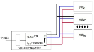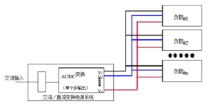 如上圖所示:這是由n+1個(gè)AC-DC多輸出電源組成的系統(tǒng),優(yōu)勢在于可靠性較高,可采用標(biāo)準(zhǔn)的電源模塊來實(shí)現(xiàn),研制成本低。缺點(diǎn)是熱管理困難,大的負(fù)載需遠(yuǎn)端補(bǔ)償?shù)?/span>,材料成本比第一種方案要高。