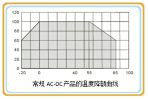 一般模塊電源廠家因為掌握了內部結構、元件特性及工藝參數等數據,再加上工程師進行測試過,得出了降額曲線比較明確的結果,從而寫在產品技術說明書上。降額曲線可以顯示在不同環境溫度下可拉功率與電流的大小,同時保持功率在其溫度范圍內,用戶根據這些數值來參考和設計即可。