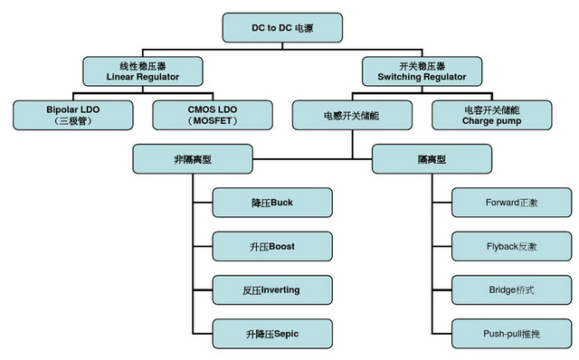 開關電源分為AC-DC電源模塊和DC-DC電源模塊倆個分支,其中DC-DC按功能可分為升壓轉換器、降壓轉換器、反向轉換器及升降壓轉換器。按電路理解的意思是可以將低壓轉成高壓輸出的電路、將高壓轉成低壓輸出的電路、將電壓極性改變的電路(負變正、正變負)三種。