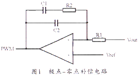 首先在所有增益大于0dB的頻率處,其閉環(huán)相位應(yīng)不超過-360°,在實際設(shè)計中,一般選擇小于300°。閉環(huán)增益的穿越頻率盡可能高,直流增益盡可能大,這樣有利于提高系統(tǒng)的調(diào)節(jié)精度和瞬態(tài)響應(yīng)。最后,閉環(huán)增益曲線的斜率應(yīng)以-20Db/dec下降。由于不同電源采用的控制方式不同,相應(yīng)的補(bǔ)償方式也不同。本文采用電流型控制方式,采用的補(bǔ)償方式為極點一零點補(bǔ)償。這種補(bǔ)償方法在直流處有一個極點,可通過提高誤差放大器的開環(huán)增益來改善輸出調(diào)節(jié)性能。在輸出濾波器最低極點頻率或以下處引入一個零點,可以補(bǔ)償濾波器極點引起的相位滯后。